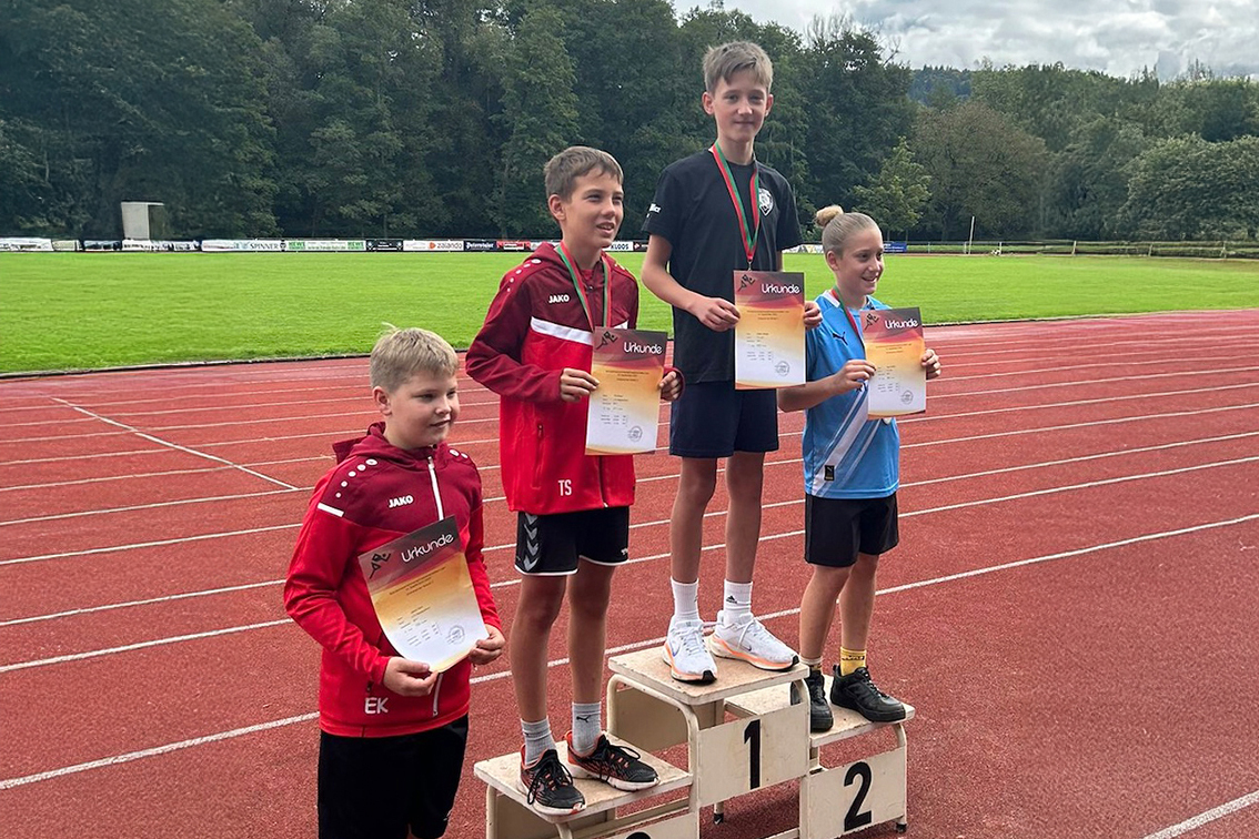 Für den TV holte Lily-Jana Clesly den Titel in der Altersklasse W15 mit einer Steigerung auf 1572 Punkte. Dabei stellte sie ihre Weitsprungbestleistung von 4,29 Metern ein. Über 100 Meter verbesserte sie sich sogar auf 14,34 Sekunden. Albert Cazacu (M14), der 2025 gleich zwei Mal bei Badischen Meisterschaften teilgenommen und u.a. als Sechster im Weitsprung überzeugt hatte, siegte im Vierkampf mit neuer Bestleistung von 1531 Punkten.